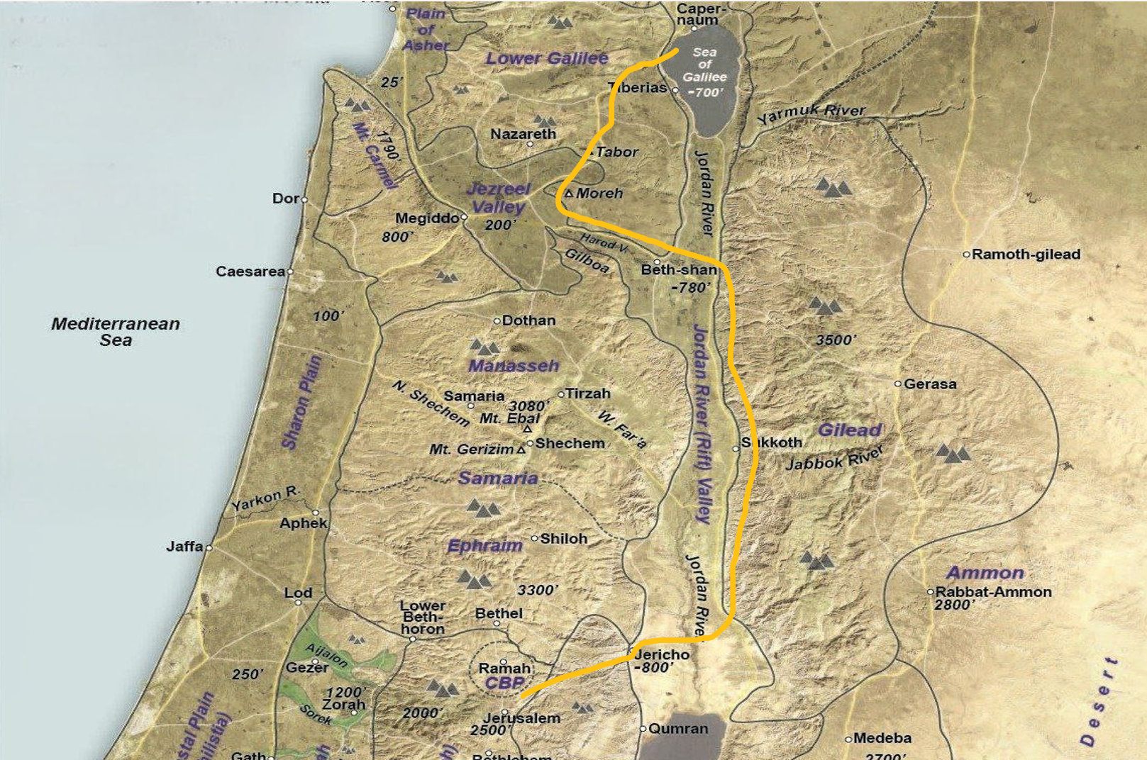 He, like other pilgrims from Galilee, would follow this main travel route: north from Capernaum, working the surrounding towns, then travelling down through the Jezreel Valley and the border villages toward the Jordan Rift. He would cross the Jordan near Beit Shean, then continue all the way down along the east of the Jordan, cross again close to Jericho, and then began the steep ascent to Jerusalem. A week of travel.