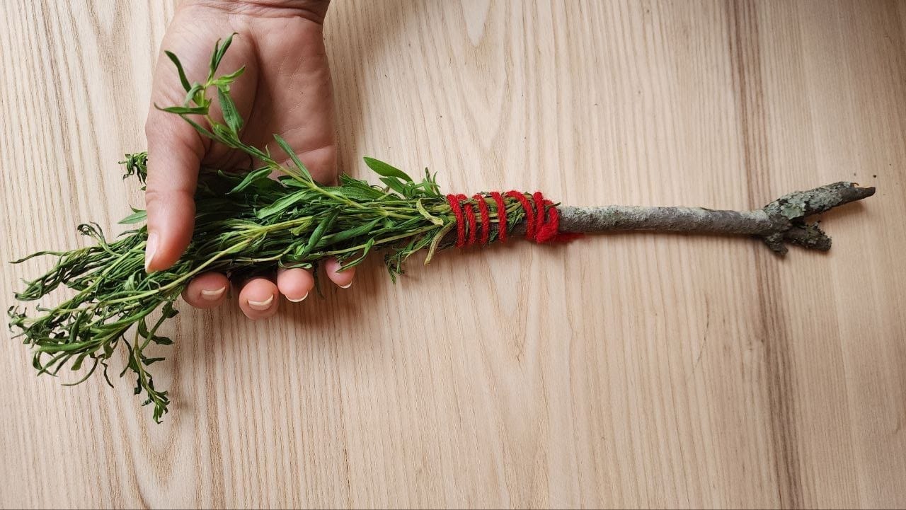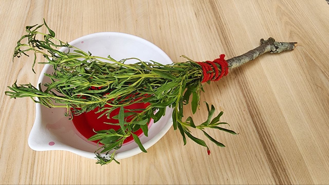 - Red thread — the line of dripping Saviour’s blood, which transforms our pride into humility.