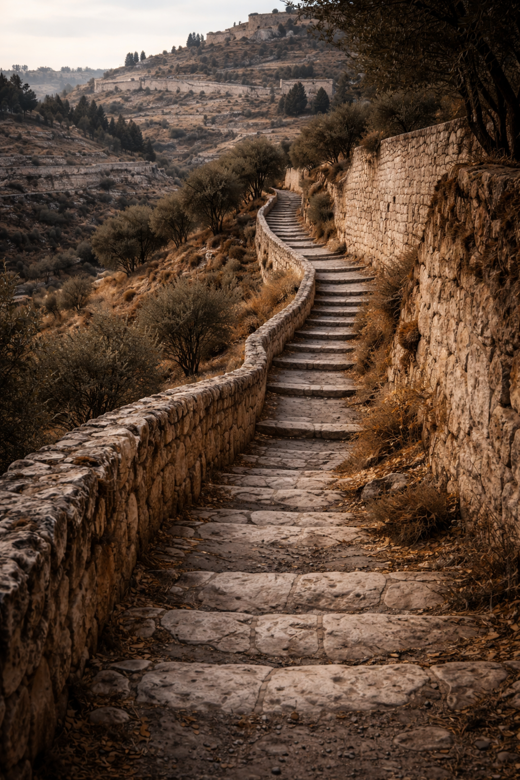 Jesus was steadily walking up the serpentine steep hill from the Kidron Valley up to the slope of Mount Moriah.